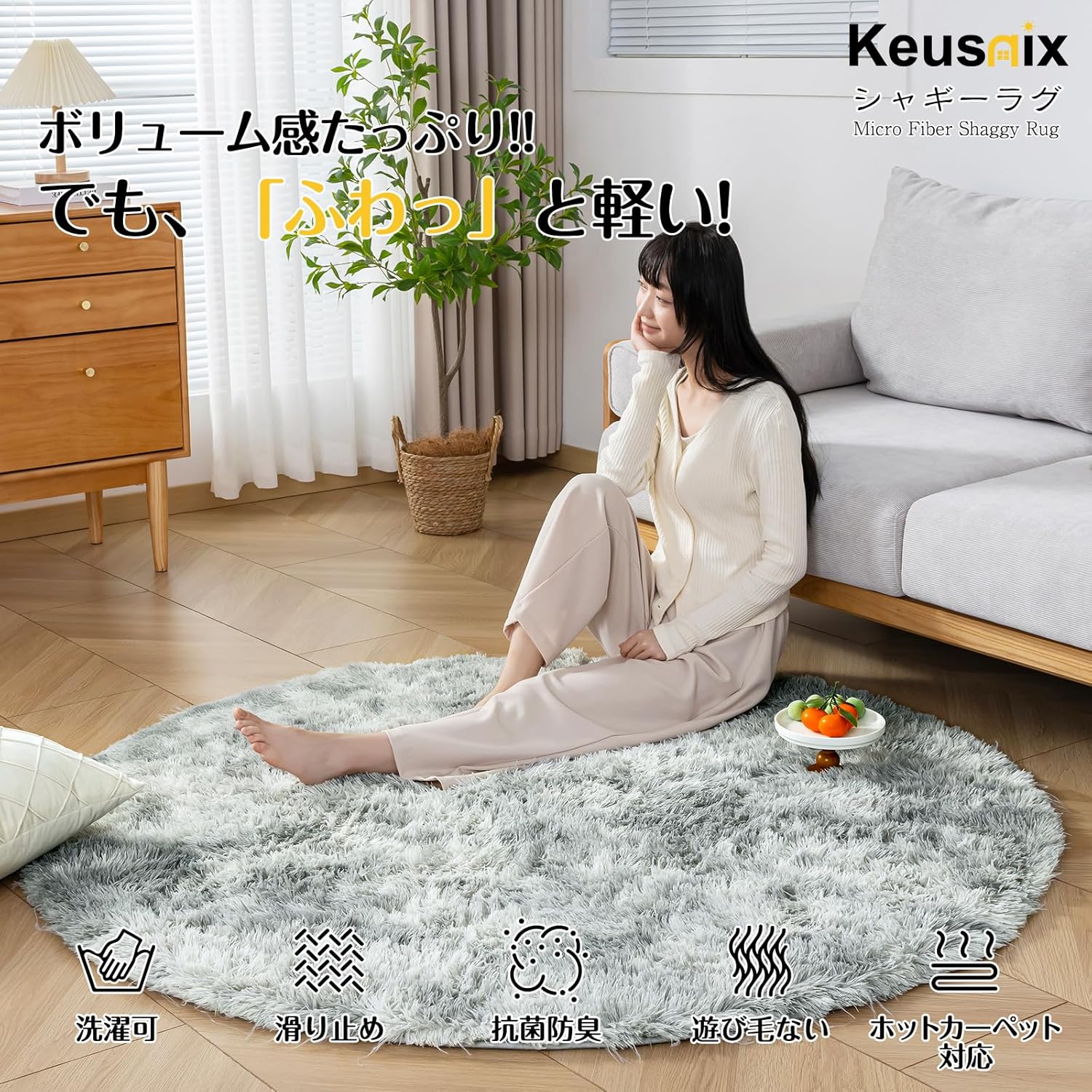 ラグマット ふわふわ シャギーラグ 円形 絨毯 直径120cm 滑り止め付 洗える 肌触り優しい 防ダニ 抗菌 防臭 オールシーズン快適に使用 床暖房 ホットカーペット対応 ブラックグレー