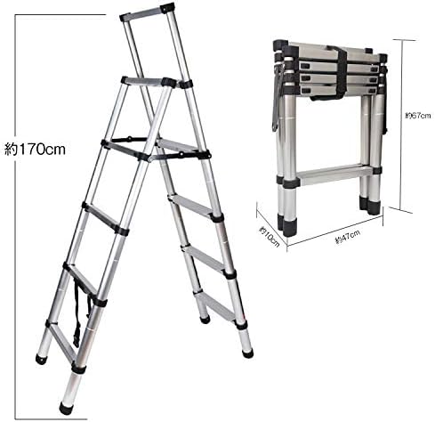 伸縮脚立 持ち手 コンパクト収納 アルミ製 掃除 工具 生活雑貨 [並行輸入品]