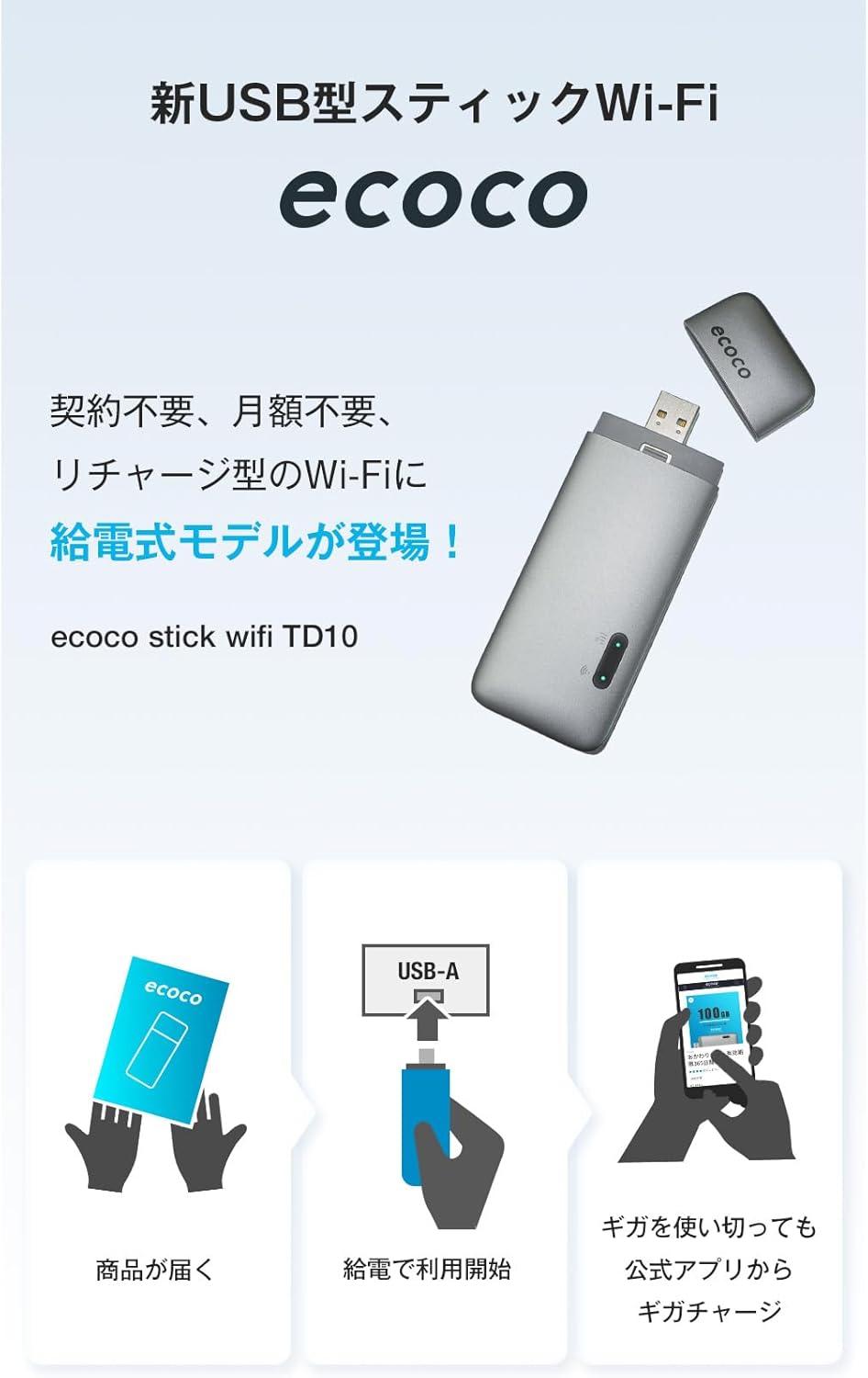 【ecoco】1年間 100ギガ 付 USB型 スティック Wi-Fi
