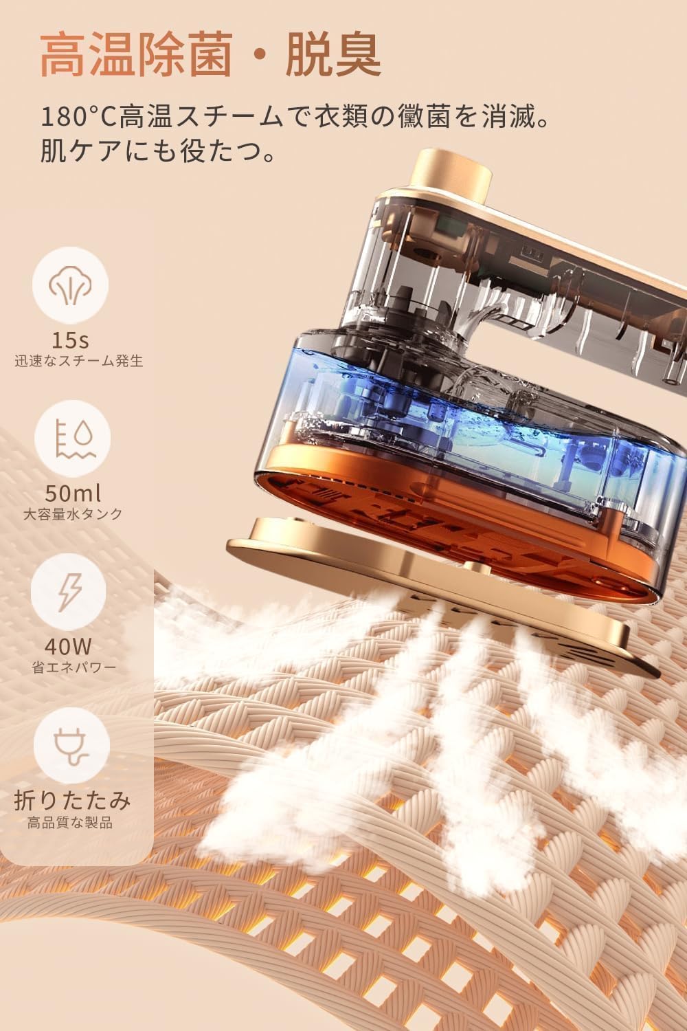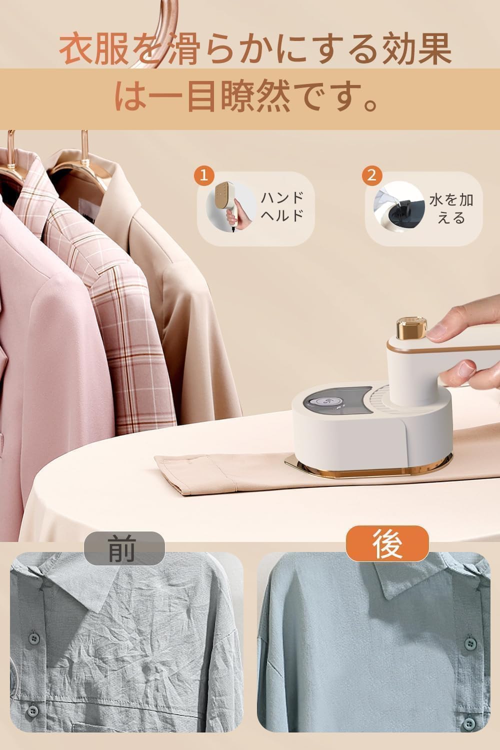 ドライアイロン・プレス一体型 強力スチーム 大容量タンク 衣類のシワ取り・殺菌 温度調節可能 連続スチーム パワフル 水漏れ防止