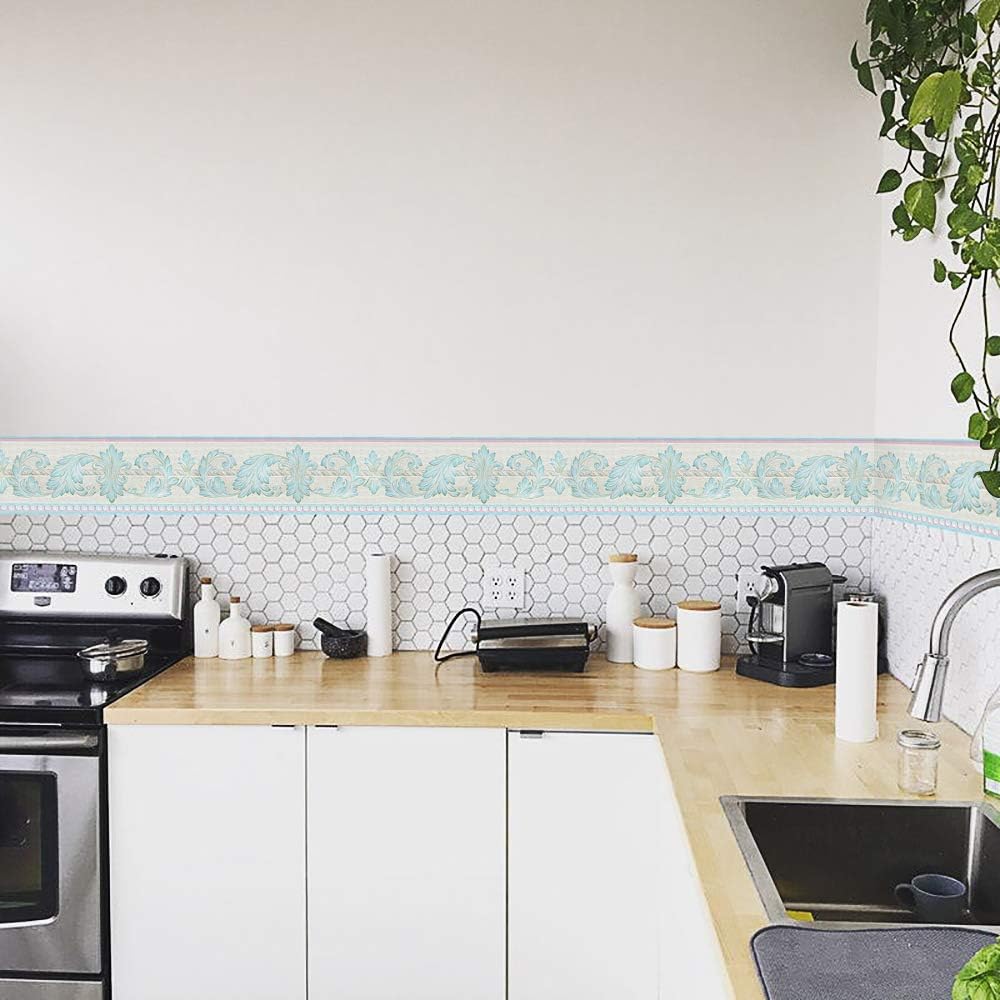 インテリアシール ブルー はがせる 浮彫 凹凸 藤花 リメイクシート キッチンシール