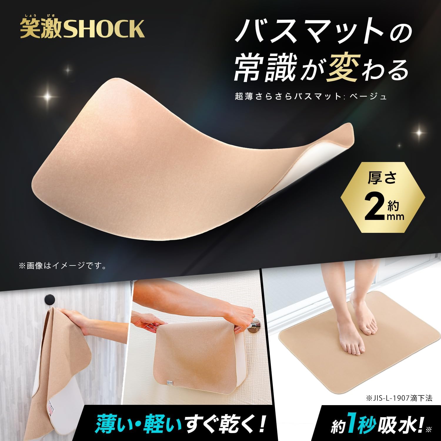 笑激SHOCK 超薄 さらさら バスマット