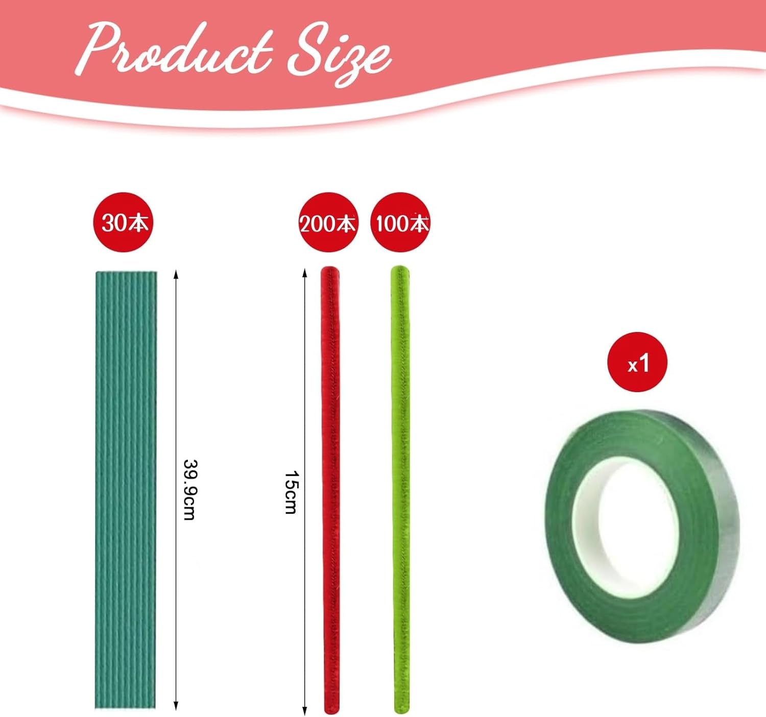 手芸素材 工作モール 人工花茎とフラワーテープ付き