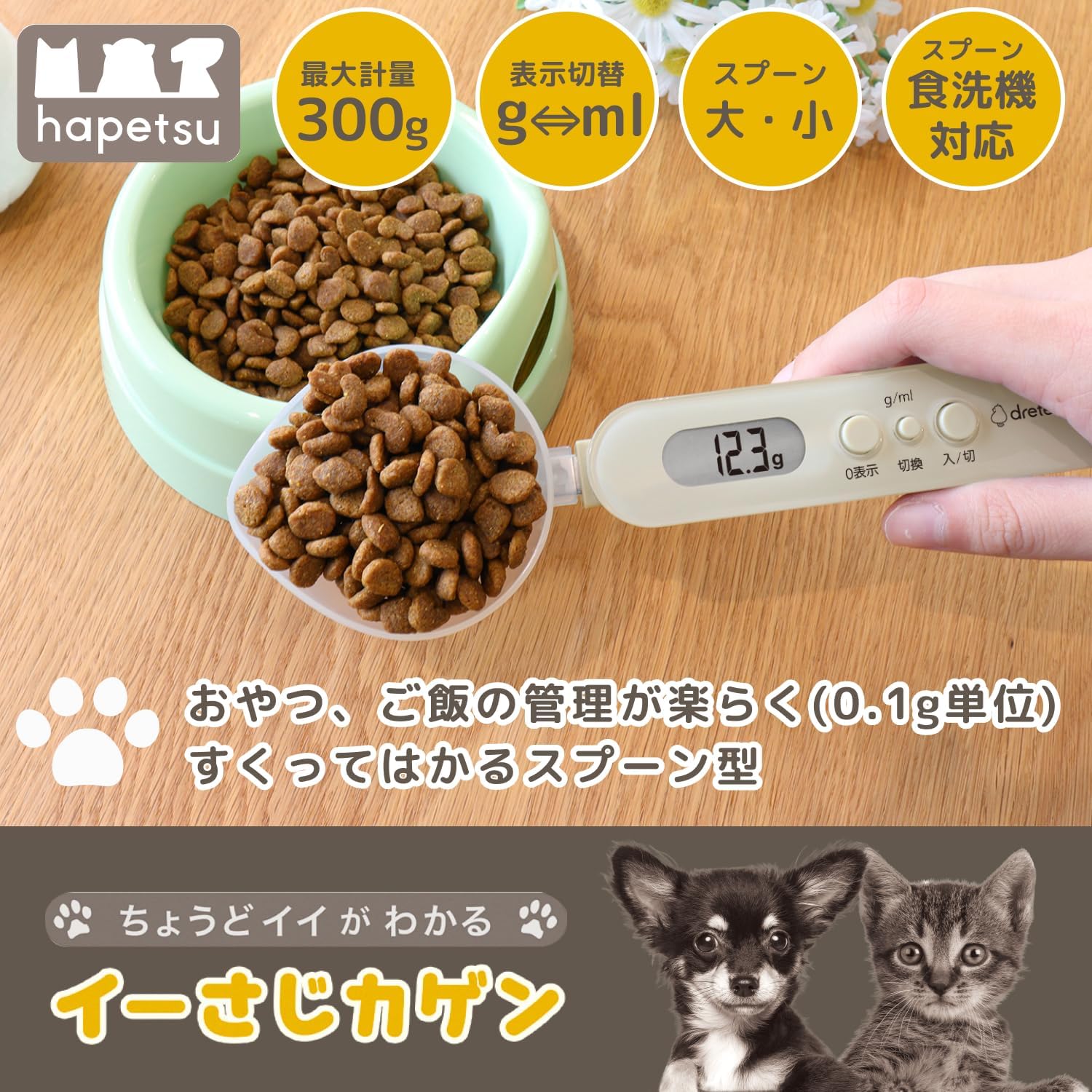デジタル 計量スプーン ペット 犬 猫 300g 0.1g単位 ちょうどイイがわかる イーさじカゲン