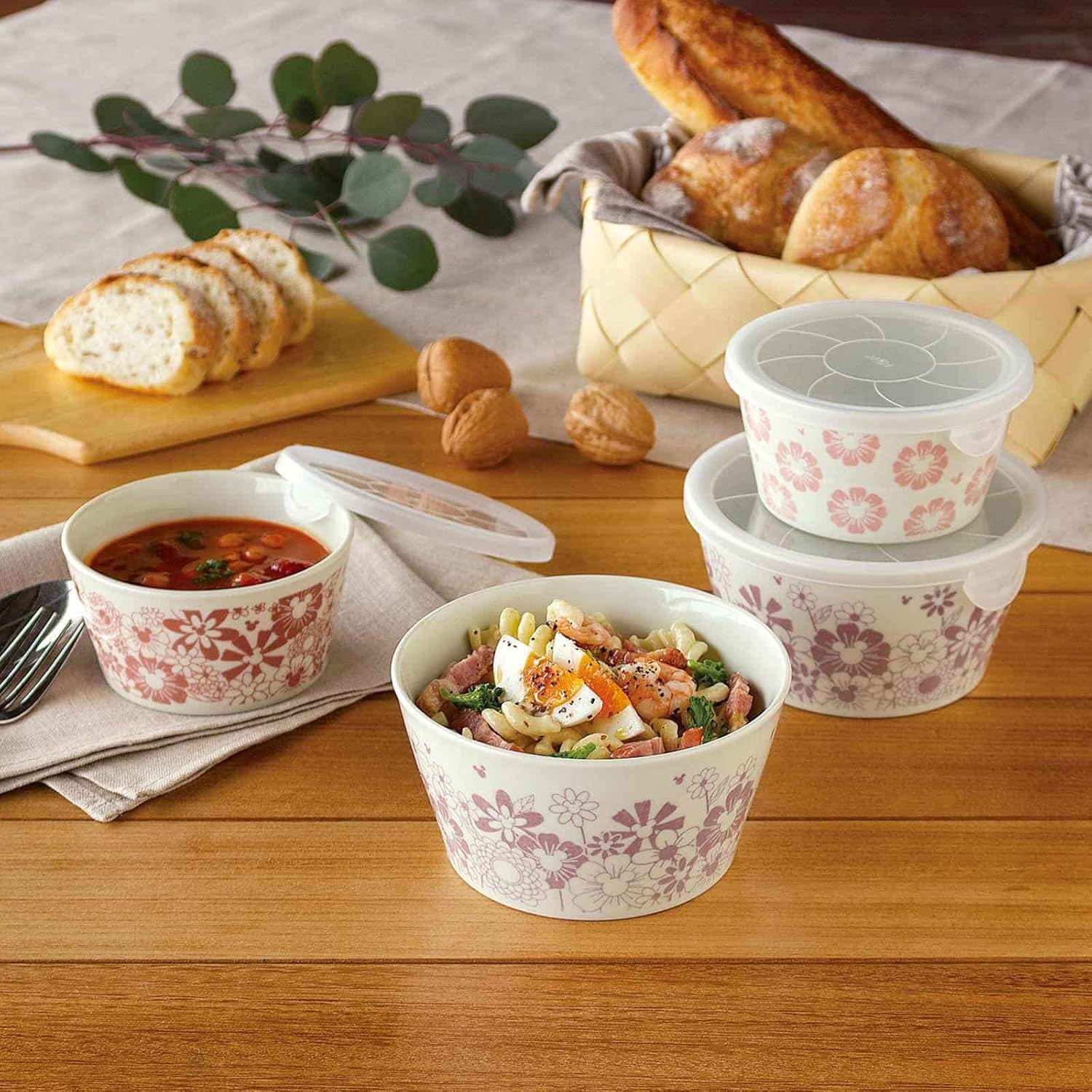 レンジパック キャニスター 蓋付き 2点セット 約300ml 約600ml 電子レンジ 食洗機対応 フラワーフラワー 食器 雑貨 グッズ 日本製 3309-01