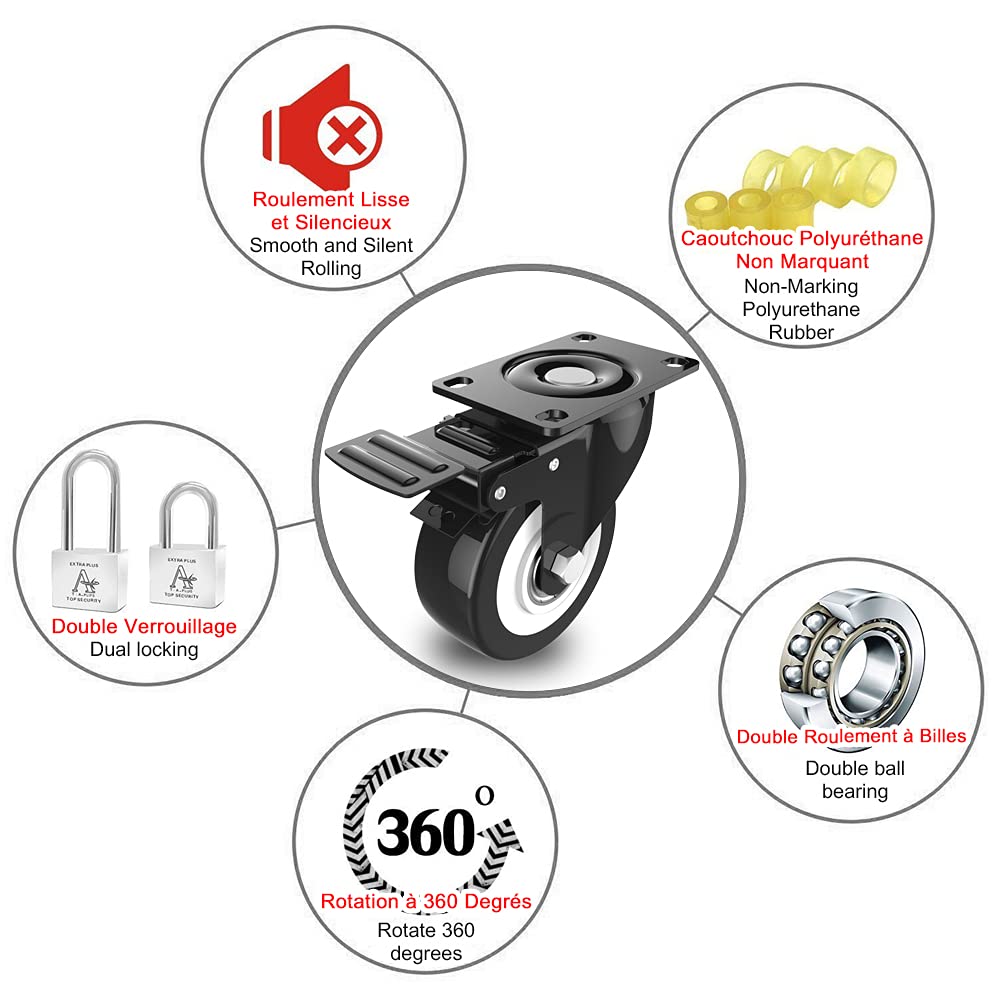 ブレーキ付き 高耐久性 単個耐荷重68kg 360度回転 静音 8個セット ミュートシリーズDIY