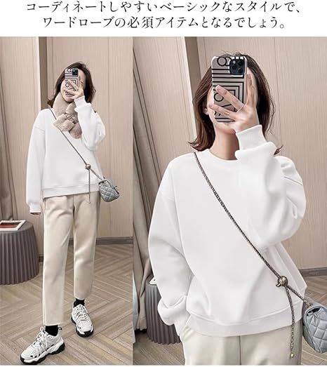 ゆったり 袖リブ トップス スウェット 長袖 無地 ラウンドネック