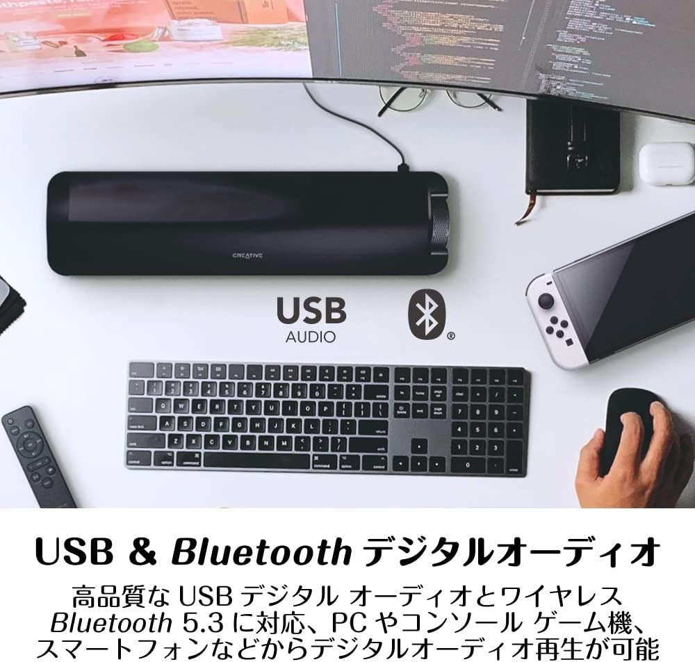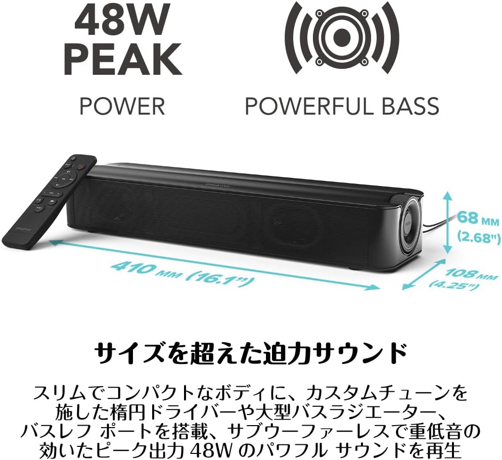 48W Bluetooth 5.3 / USB DAC 搭載 PC サラウンド サウンドバー スピーカー
