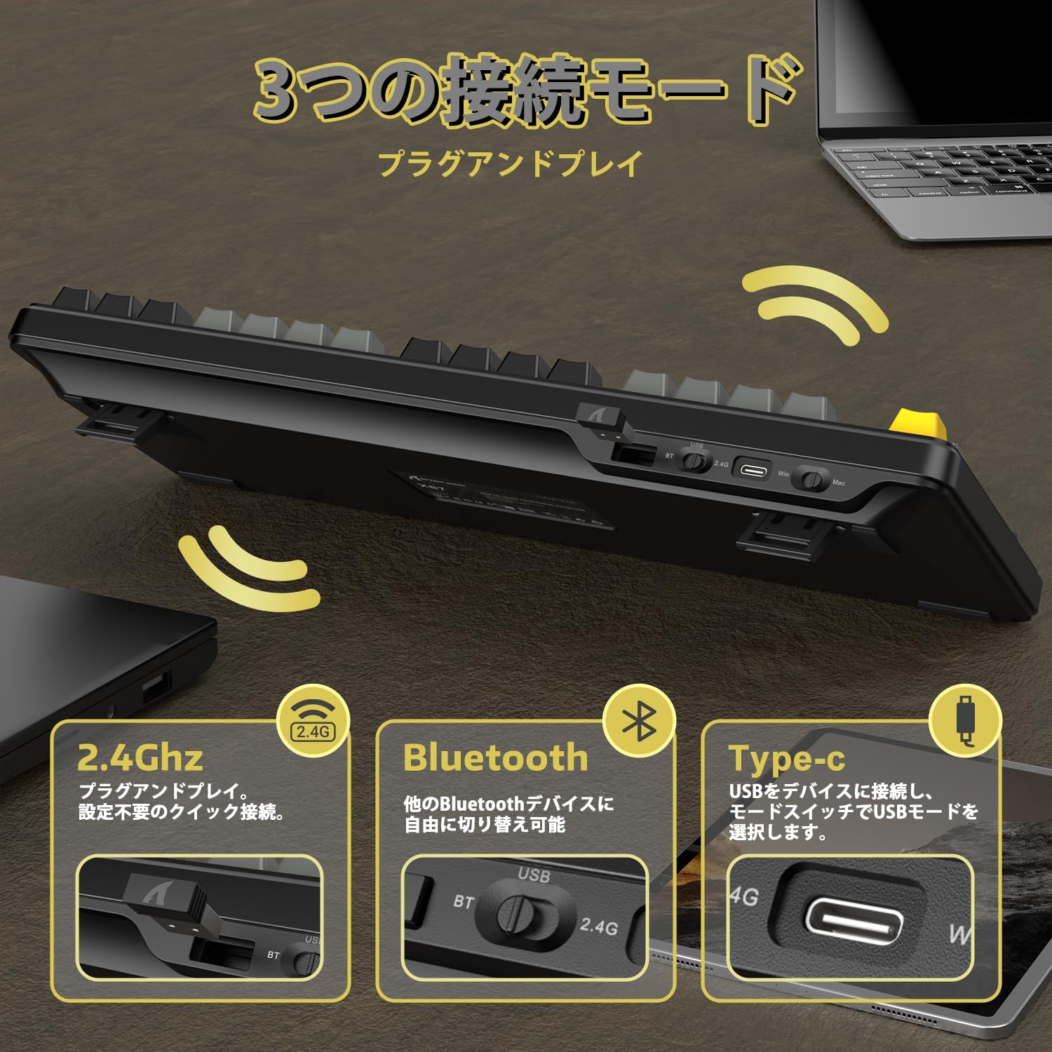 ワイヤレス/Bluetooth/USB 三つの接続モード メカニカルキーボード ホットスワップ ガスケット構造 5層吸音フォームデザイン