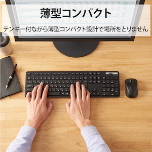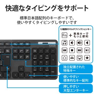 エレコム無線キーボード 薄型 メンブレン式 抗菌 フルサイズ マウス付(ブラック)TK-FDM110MKBK