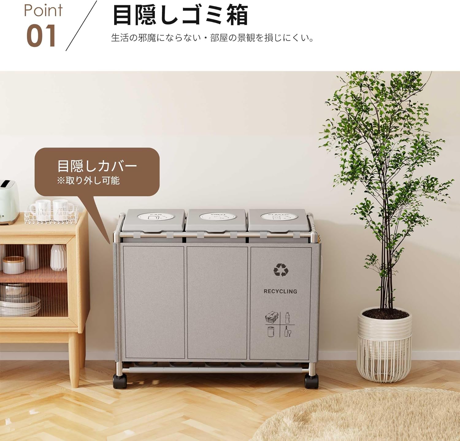 大容量 キャスター付き おしゃれ ふた付き 袋見えない スリム キッチン 自宅