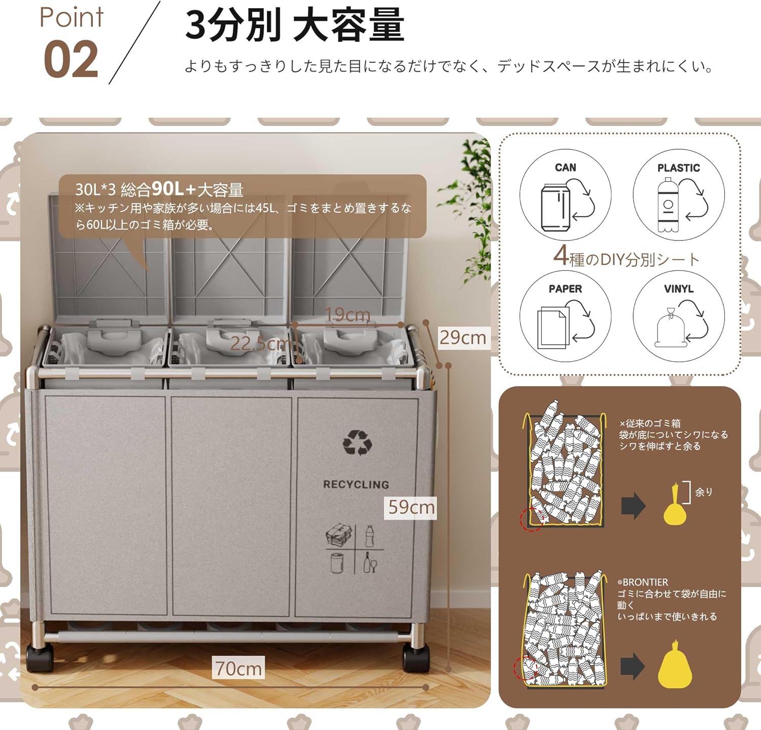 brontier ゴミ袋ホルダー ゴミ箱 3分別
