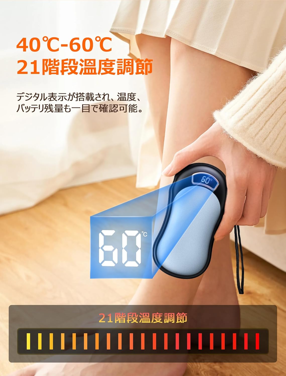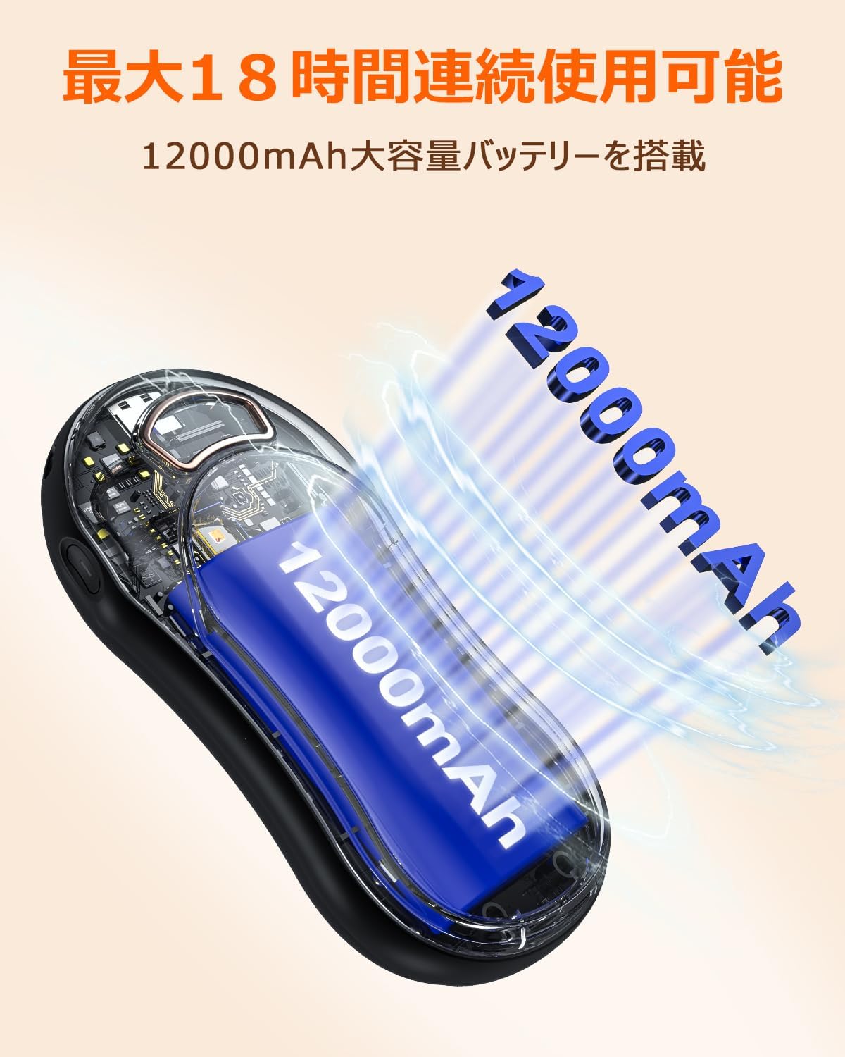 電気カイロ 12000mAh大容量 21階段温度調節 最大18時間連続使用