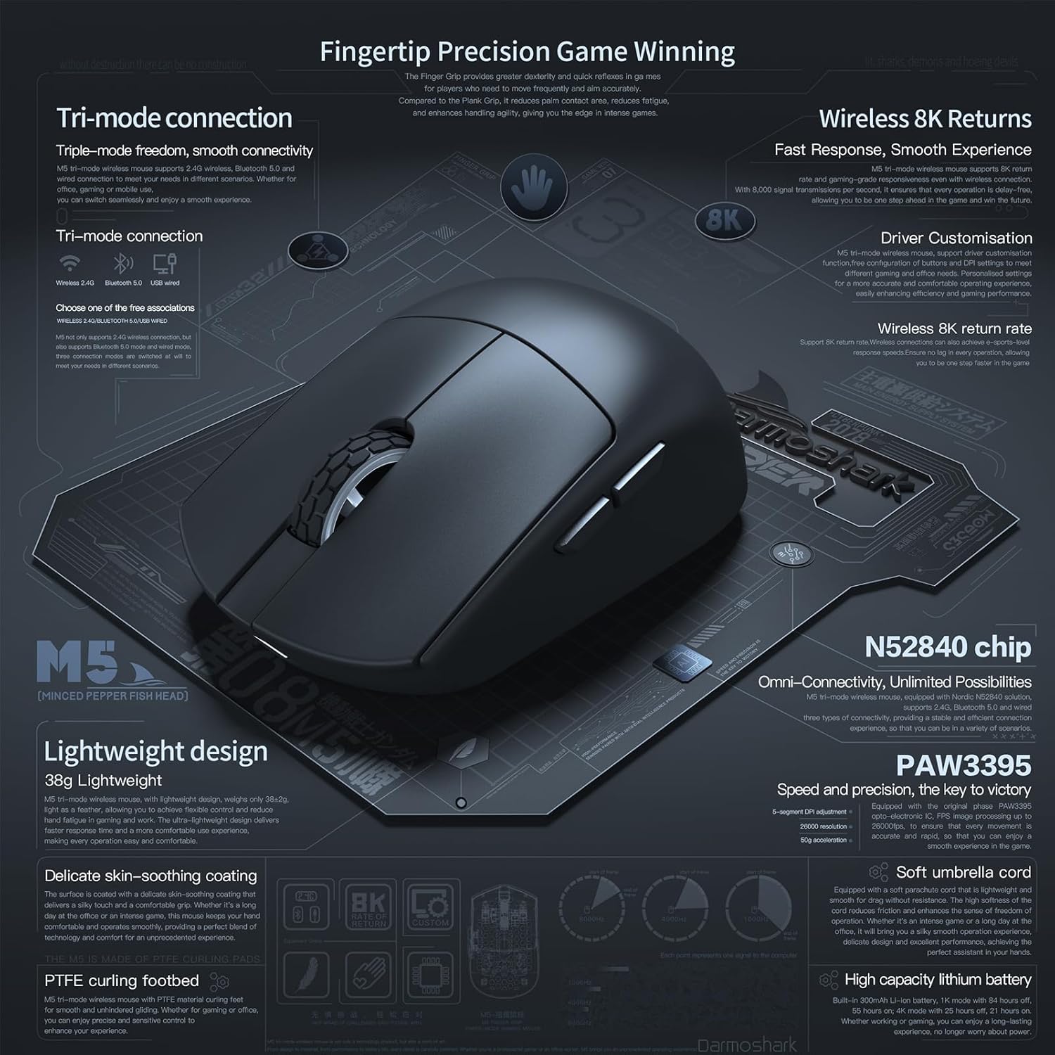 ゲーミングマウス HOGREL×Darmoshark M5 4K/8KHz