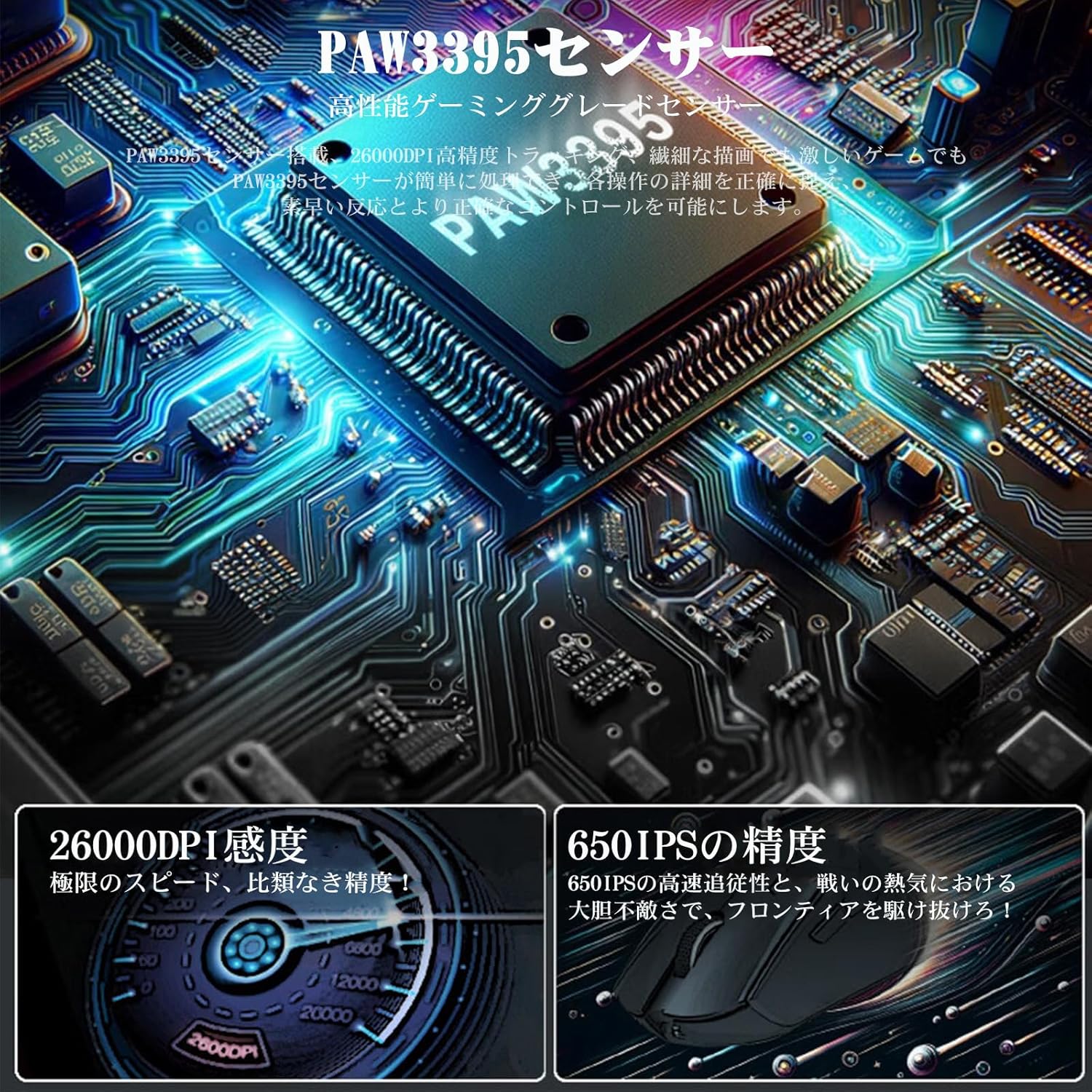小型ワイヤレスマウス PAW3395 8倍以上の高速性 最大8000Hzポーリングレート