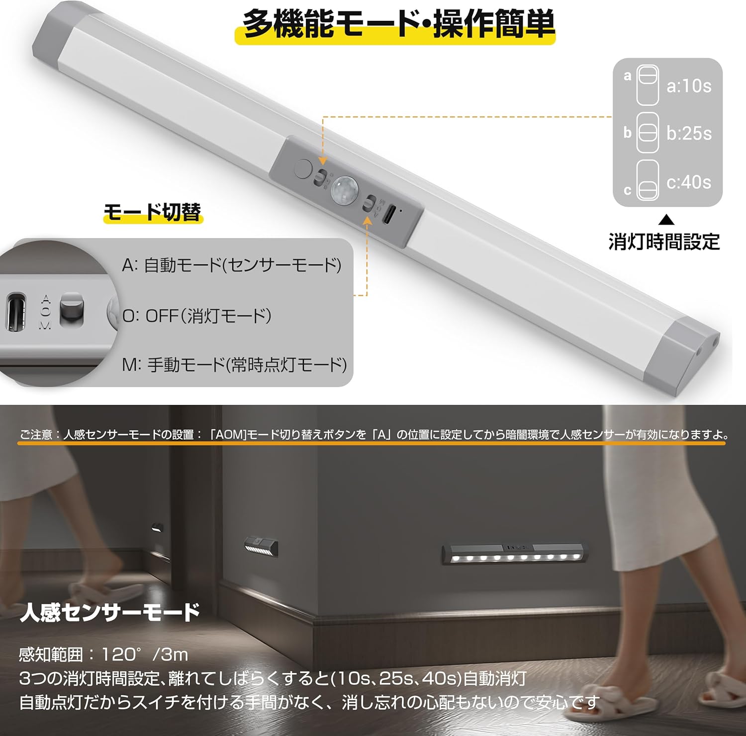 人感センサーライト 室内 充電式