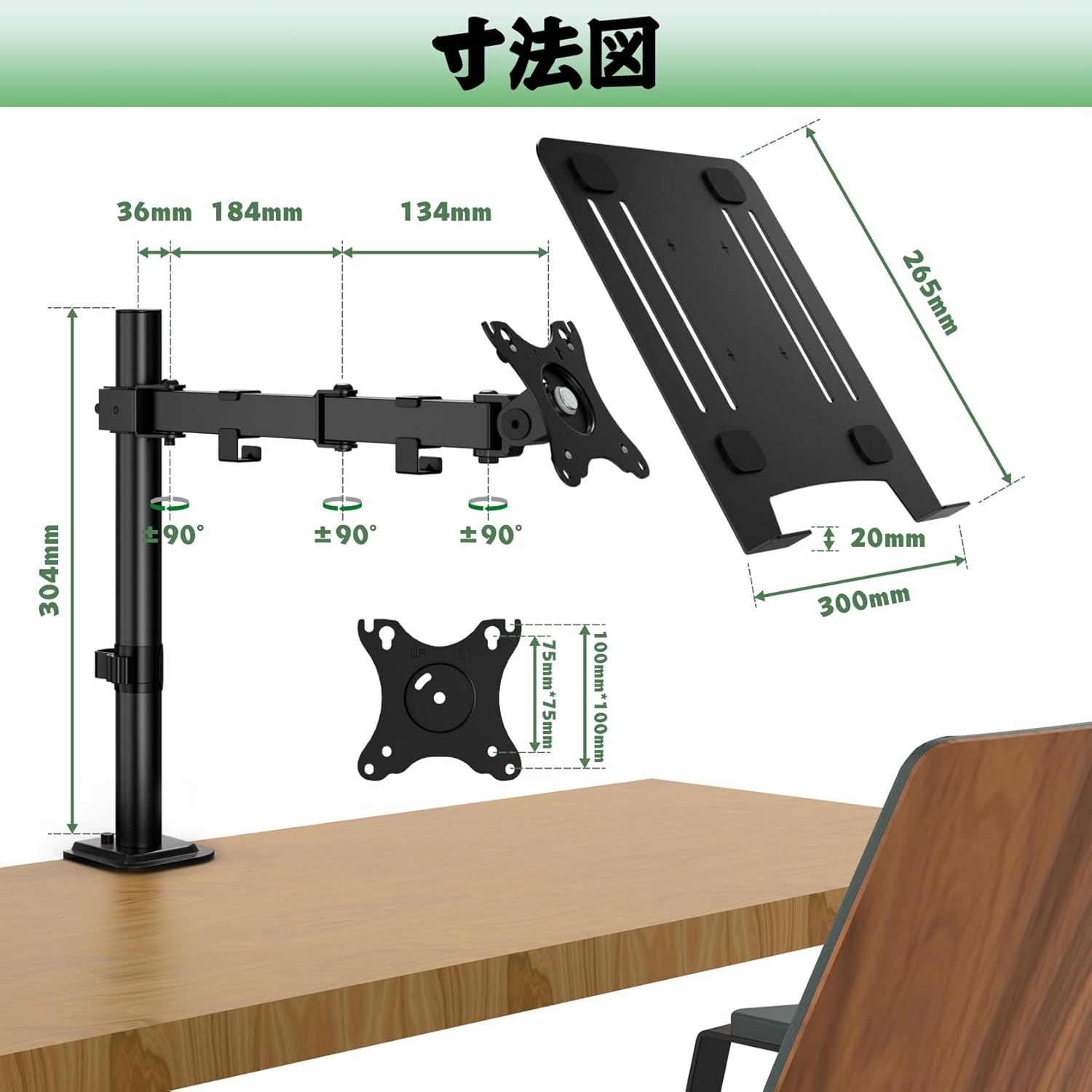 ノートPCスタンド 15.6インチ モニターアーム 17インチ対応 耐荷重8KG VESA規格75-100mm