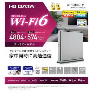I/OデータWi-Fi 6(4804Mbps+574Mbps) 2.5Gbps 無線LANルーター360コネクト ビームフォーミング PS5/PS4/Nintendo Switch動作確認済みWN-DAX5400QR LF0123