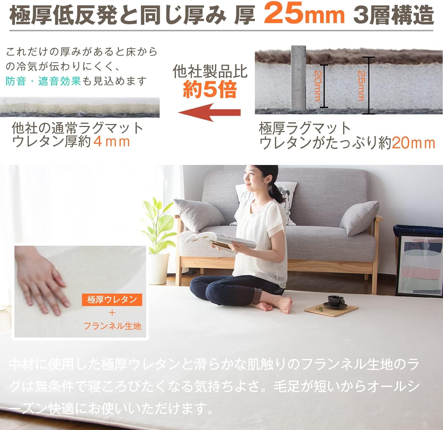 極厚25mm 200×250cm 約3畳 クッションラグ 防音 厚手 撥水加工 防ダニ 抗菌 防臭 低ホルム もちもち ふわっと手触り ホットカーペット対応 低反発と同じ厚み ラグマット こたつ敷きマット リピングマット アイボリー(NEW)VTJ049-200250-IV