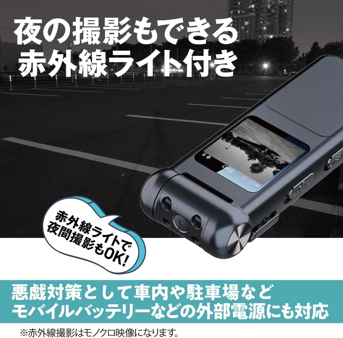 長時間録画 屋外 屋内 動画 180度レンズ回転 モニター確認 日本語 取説 再生 動体検知