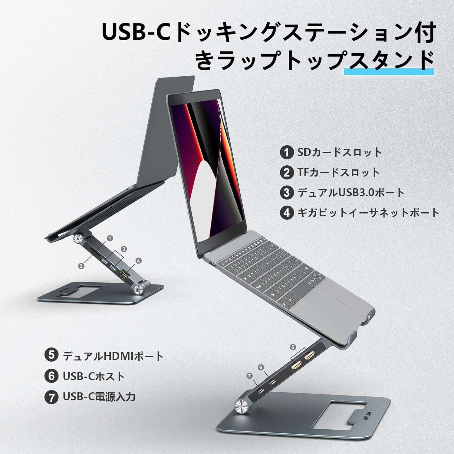 USB-Cドッキングステーション付き 人間工学に基づいたポータブルpc昇降折りたたみマウント