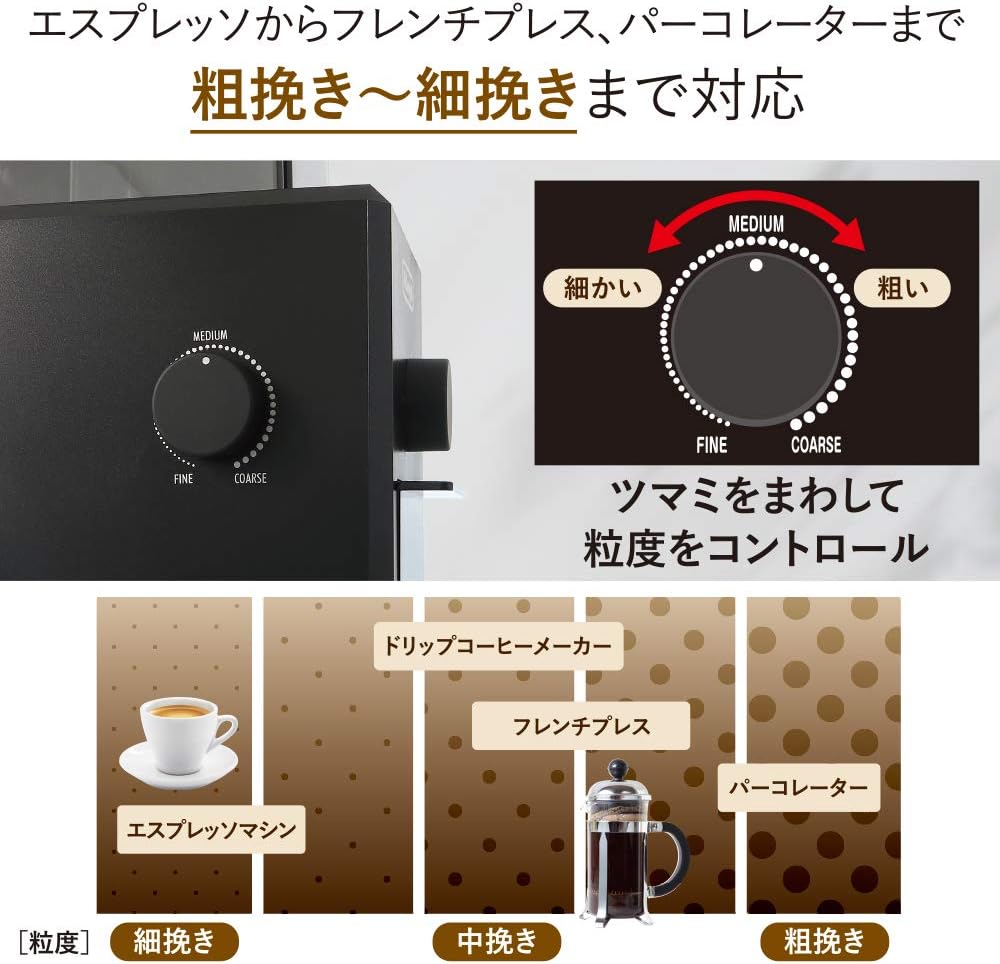 うす式 コーヒー豆120g分 簡単操作 粗挽き~細引き 着脱式コンテナ 安全設計