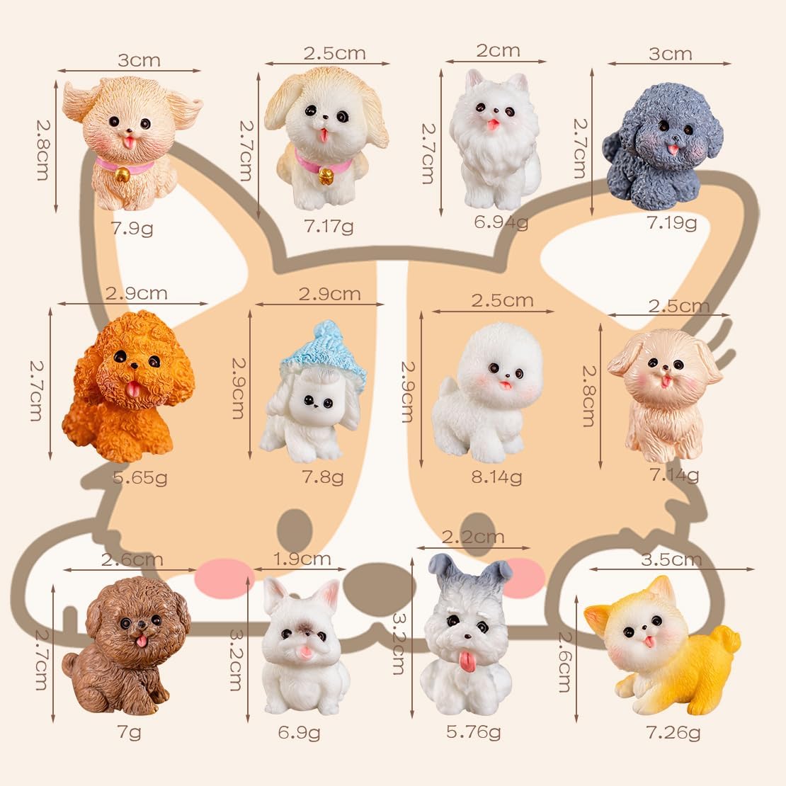 ワンちゃん 12匹 セット ?脂 縁起物 置物 装飾品 ミニ 強くて耐久性 幸運 ミニ 友達 贈り物 ダックス 装飾3D 立体卓上 樹脂 盆栽 車 鉢植え 園芸 小道具 多種類 (A)