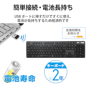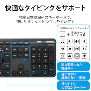 エレコム 無線キーボード 薄型 メンブレン式 抗菌 フルサイズ(ブラック) TK-FDM110TKBK LF0437