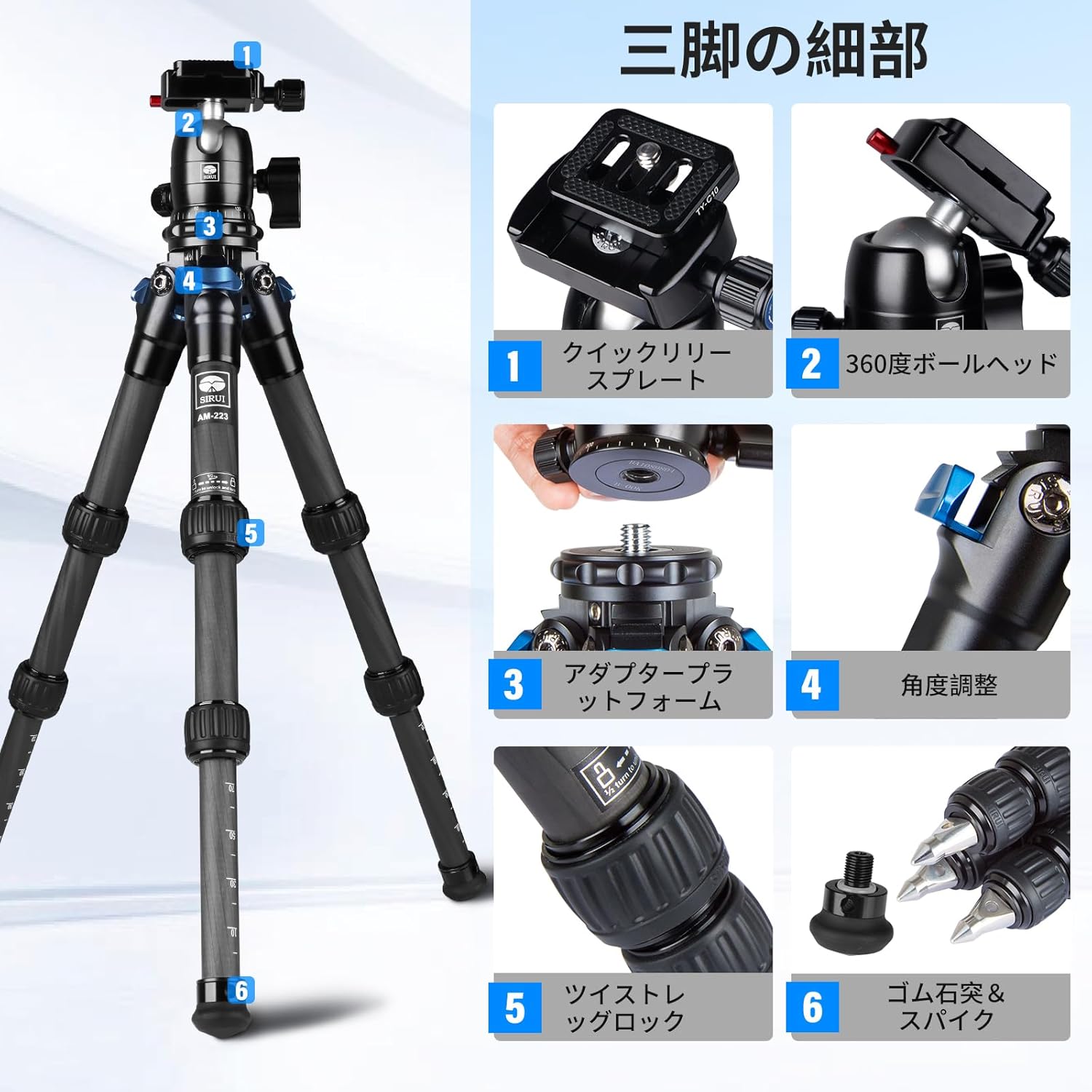 スマホ/カメラ/ビデオ/一眼レフ/望遠レンズ カーボンファイバー 3段伸縮 3WAY雲台