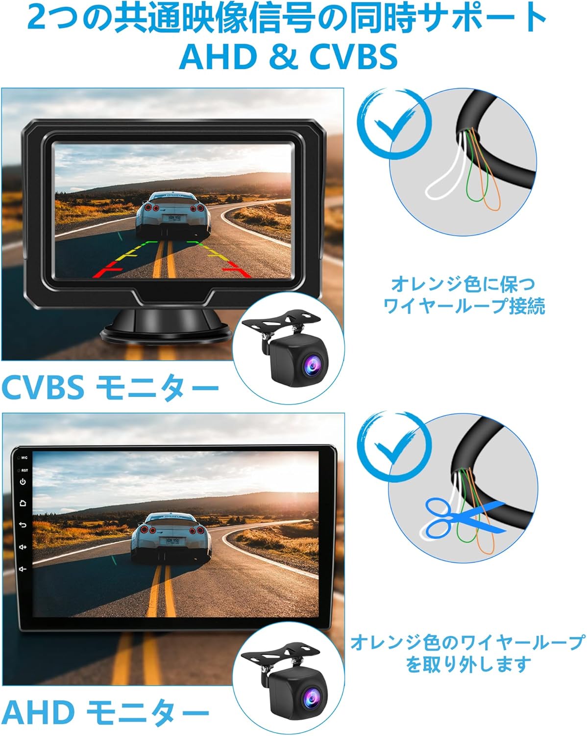 バックリアカメラ穴開けなく100万画素超小型CCDセンサーナンバープレート取付最小照度0.1 lux暗視機能付きIP69K高防水防塵140°超広角車汎用RCA接続AHD/CVBS両対応正像・鏡像切替可能ガイドライ表示・非表示切替12V対応角度調整可取付簡単超小型車載カメラ二種類取付方法有り日本語説明書