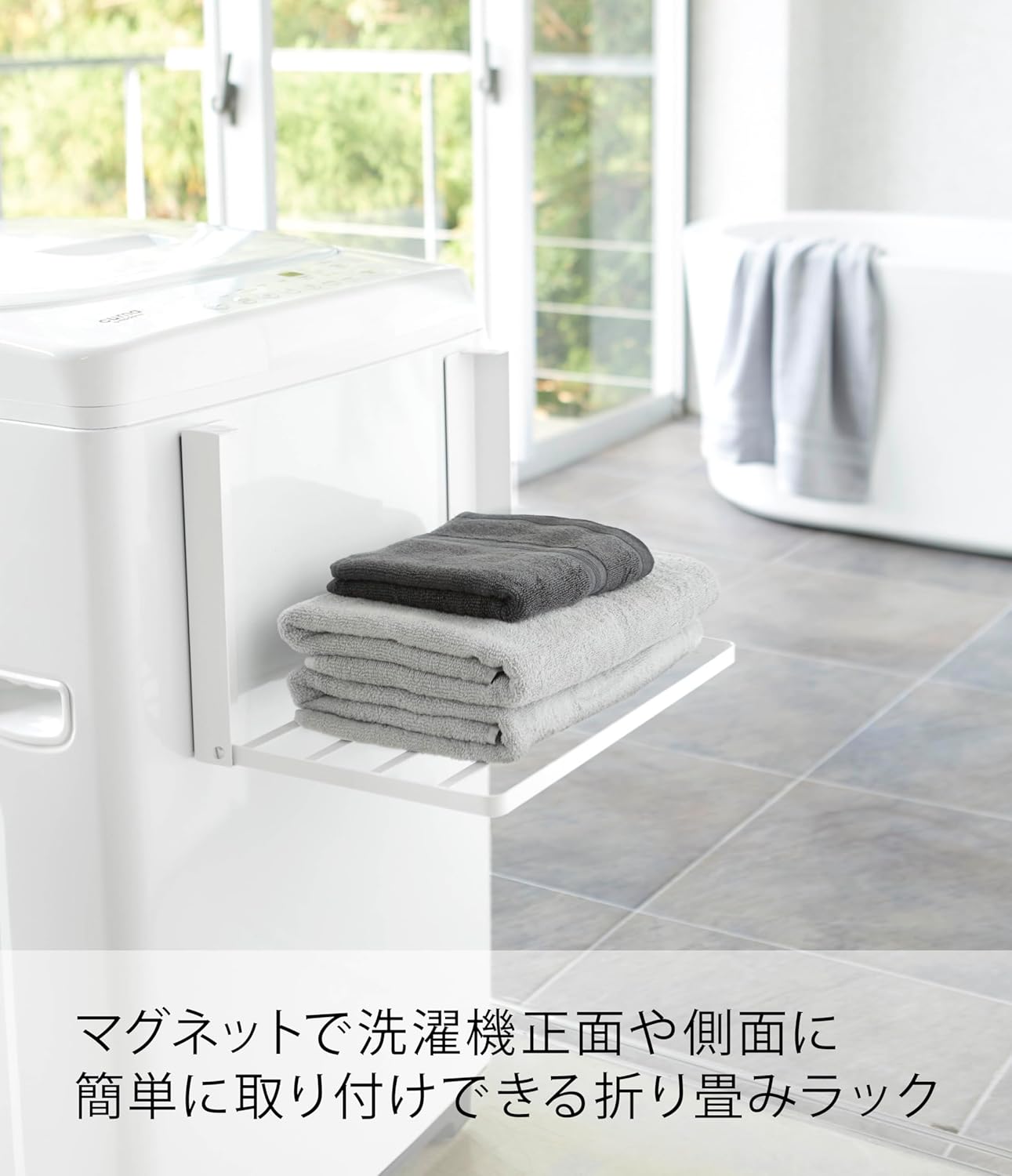山崎実業(Yamazaki) 洗濯機横 マグネット 折り畳み棚 ホワイト