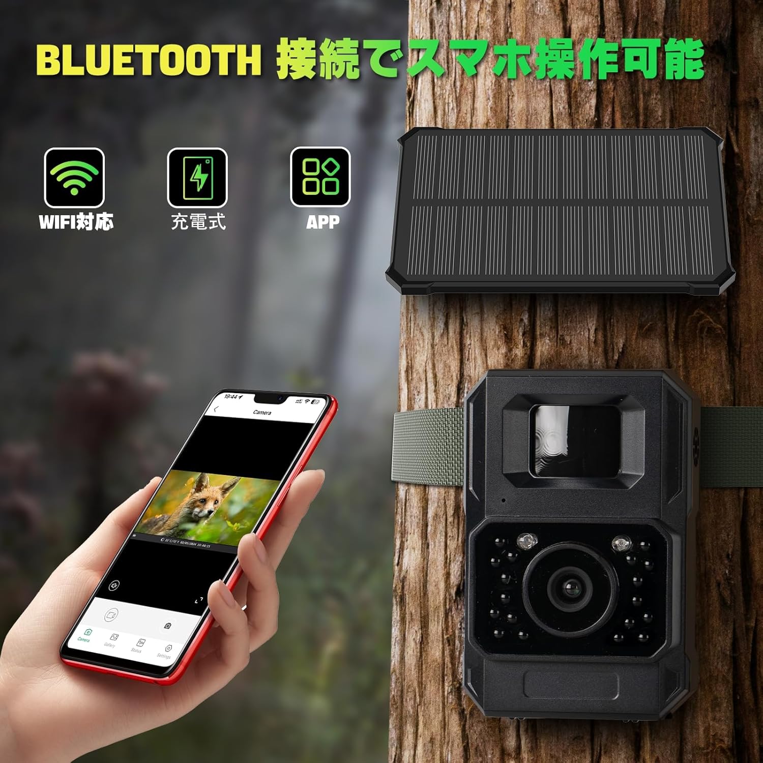 トレイルカメラ ソーラーパネル 4800万画素 1080P 小型 屋外 野外 乾電池不要