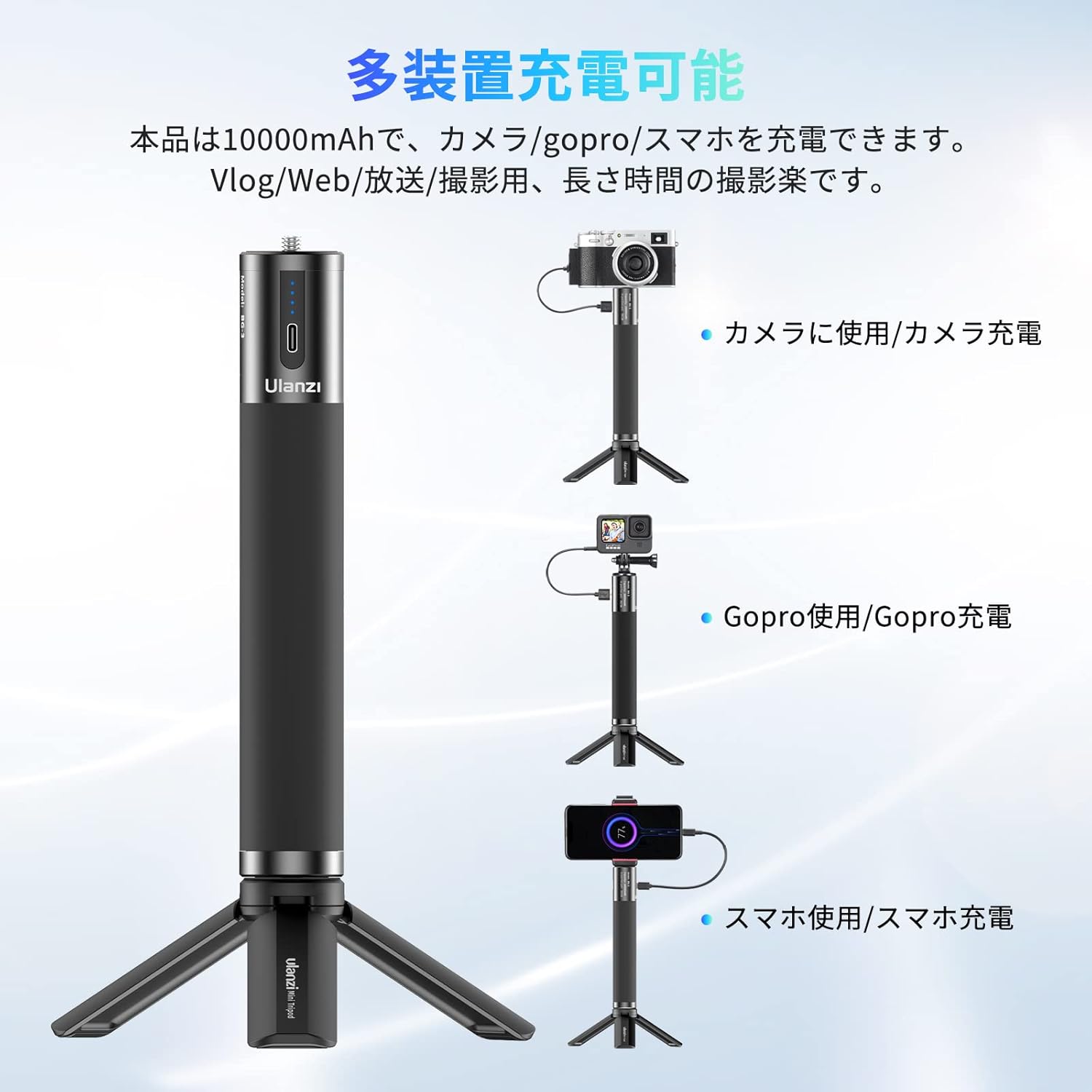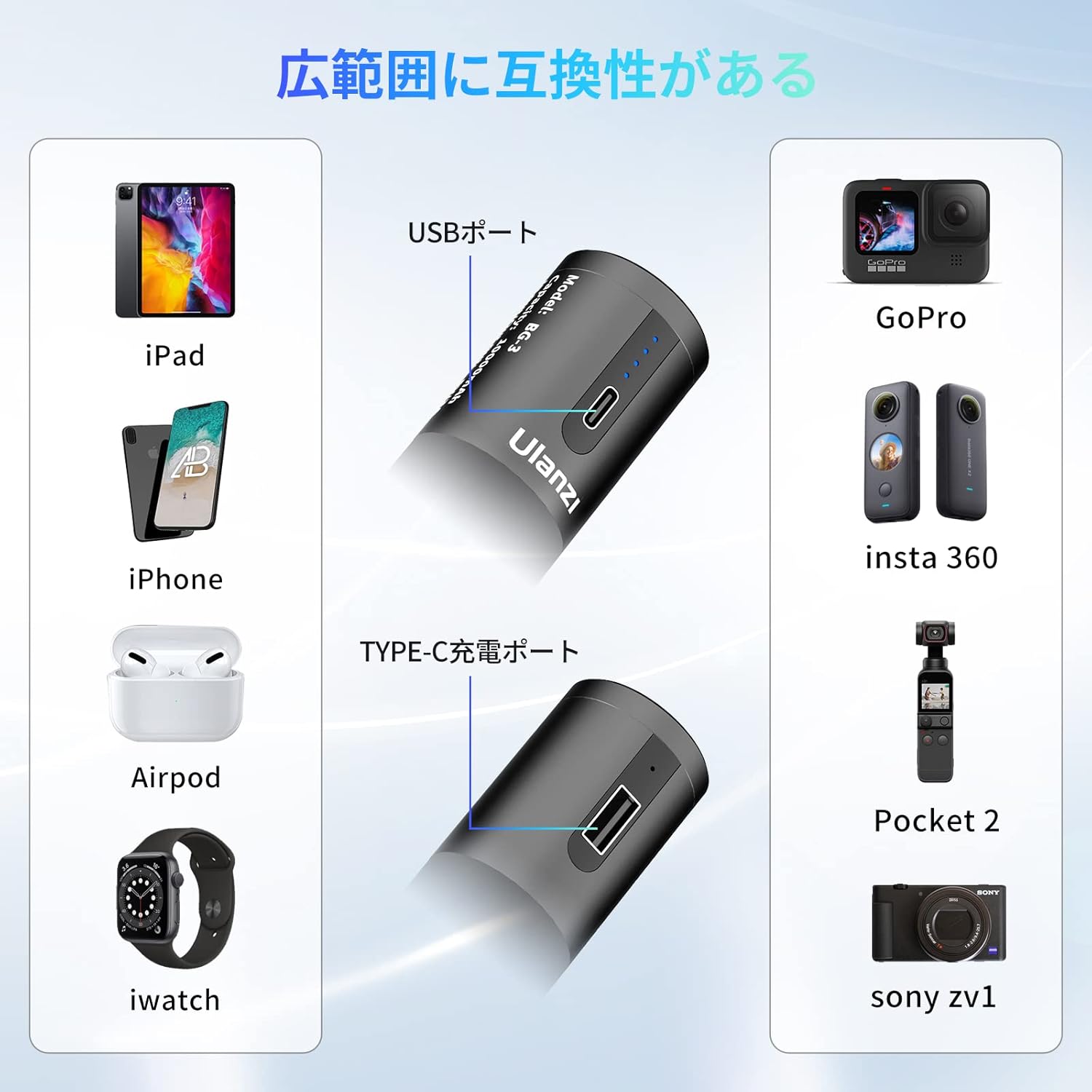 モバイルバッテリー カメラハンドバッテリーグリップ gopro hero11/10/9適用