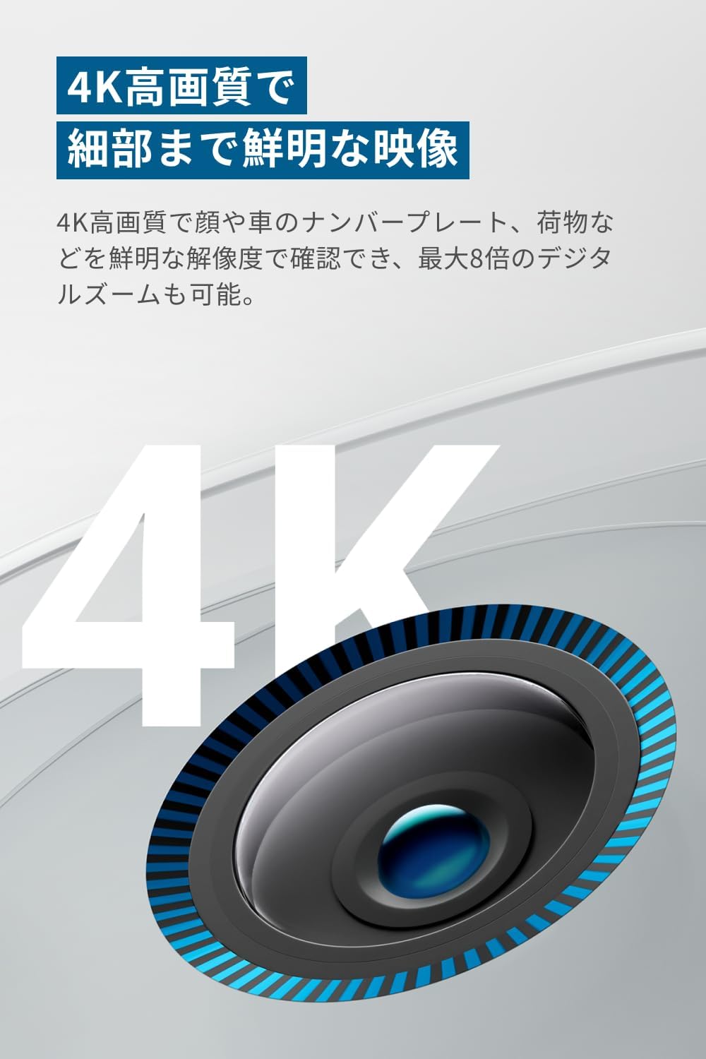 ソーラー充電/顔認識/AI技術 / 800万超高画素 / 4K画質 / 8倍ズーム / 防犯カメラ/ワイヤレス対応